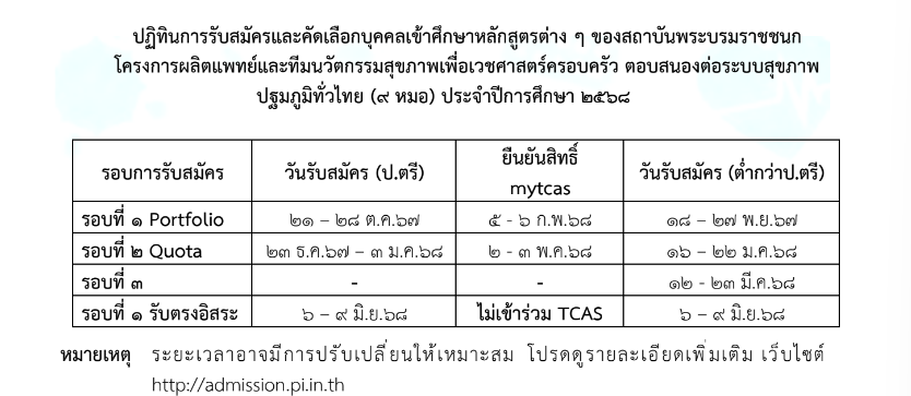 หมายเหตุ หลักสูตรและจํานวนการรับสมัครอาจมีการเปลี่ยนแปลงตามความเหมาะสมศึกษาเพิ่มเติมที่ https://admission.pi.ac.th