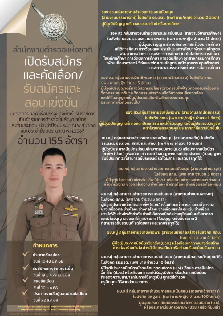 สำนักงานตำรวจแห่งชาติ เปิดรับสมัครสอบแข่งขันบุคคลภายนอก เพื่อบรรจุแต่งตั้งเข้ารับราชการเป็นข้าราชการตำรวจชั้นสัญญาบัตรและชั้นประทวน ประจำปีงบประมาณ พ.ศ.ศ.2566 และประจำปีงบประมาณ พ.ศ.2567